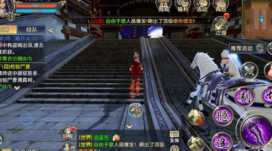 宝箱跳跃的核心要求是掌握轻功技巧。游戏初始会赠送一段轻功身轻如燕,长按跳跃键即可触发,但想要获取更高处的宝箱,必须学会二段或三段轻功。20级后可以接取二段轻功任务,前往桃花谷翠竹谷找逍遥子对话,完成爬上石台取酒的任务即可解锁。三段轻功则需要挑战四大护法并登上皇宫灯笼,难度更高但能解锁更远的跳跃距离。